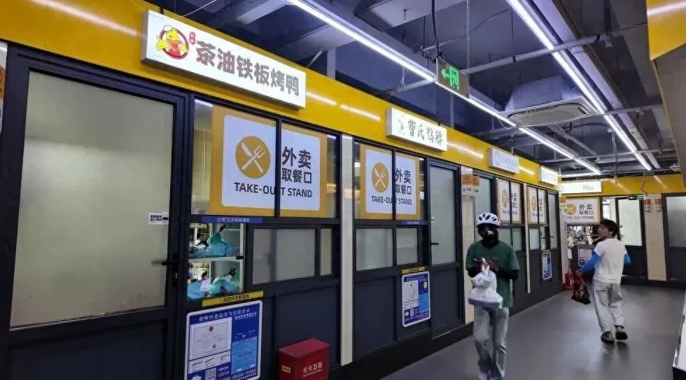 杭州新天地农贸市场的无堂食外卖聚集区。新华社记者张璇 摄位于杭州市拱墅区方圆金街商业中心的无堂食外卖区,曾是一处市民投诉的重灾区。如今,经过市场监管部门、运营单位、商户的共同努力,这里焕然一新——无堂食外卖店依次排开,每家店的出餐口整齐划一,内部厨房布局干净整洁,聚集区设有共享粗加工间、共享仓库和小哥驿站。