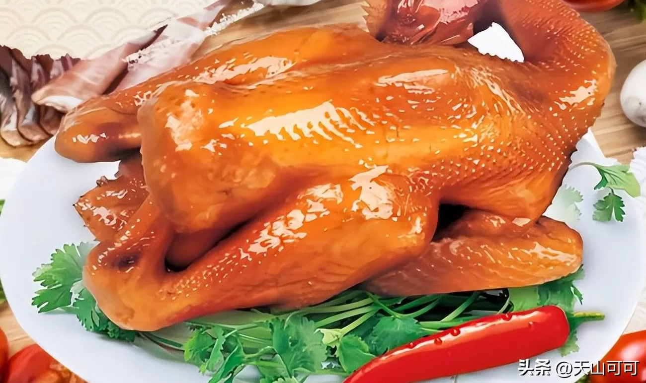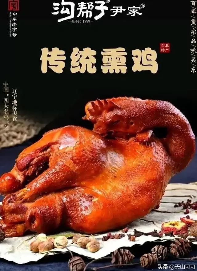 四、沟帮子熏鸡:辽西走廊的烟熏艺术辽宁北镇沟帮子镇的熏鸡制作始于清光绪年间,创始人尹玉成融合了宫廷熏制技法与民间配方。选用散养公鸡,经老汤煮制后,以白糖、茶叶熏烤上色,形成独特的烟熏风味。其制作需经历16道工序,尤其讲究“三熏三烤”,成品表皮呈枣红色,肉质紧实带有果木香。作为东北传统美食代表,沟帮子熏鸡曾获巴拿马国际博览会银奖。
