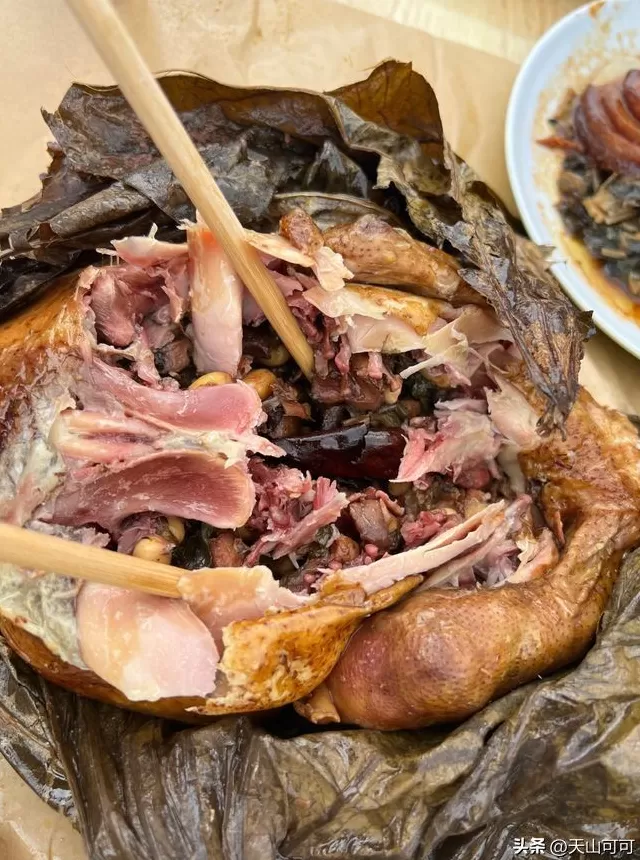 五、常熟叫化鸡:金庸笔下的江湖至味江苏常熟叫化鸡因《射雕英雄传》中黄蓉烹制情节而广为人知,实则源自明代乞丐的野外烹饪智慧。选用鹿苑三黄鸡,腹填虾仁、香菇等八宝馅料,用荷叶包裹后再涂酒坛泥烘烤四小时。敲开泥壳的瞬间,荷香与肉香交融,鸡肉酥烂脱骨。1983年常熟厨师在日本表演叫化鸡制作,引发东瀛美食界轰动,这道充满武侠情怀的美食也成为中外文化交流的使者。