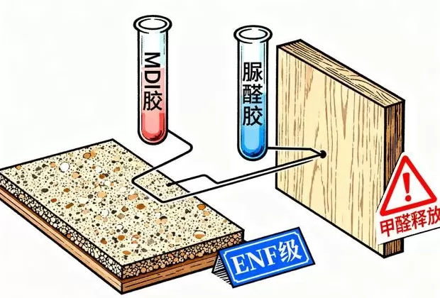 颗粒板被喷得最狠的“不环保”,早被万华第四代MDI胶干到“未检出”,只是国内还有大把小厂用脲醛胶拉低成本,背锅的却是整个品类。