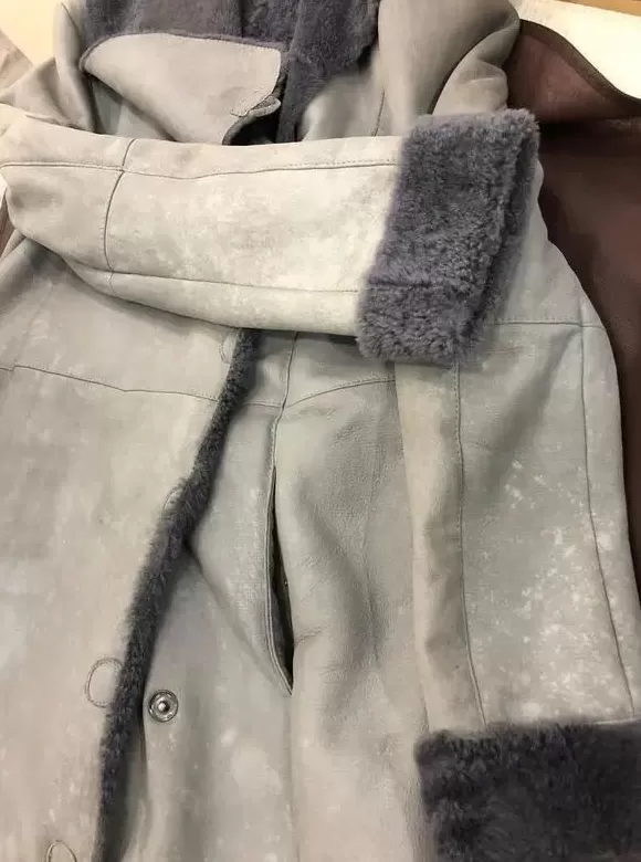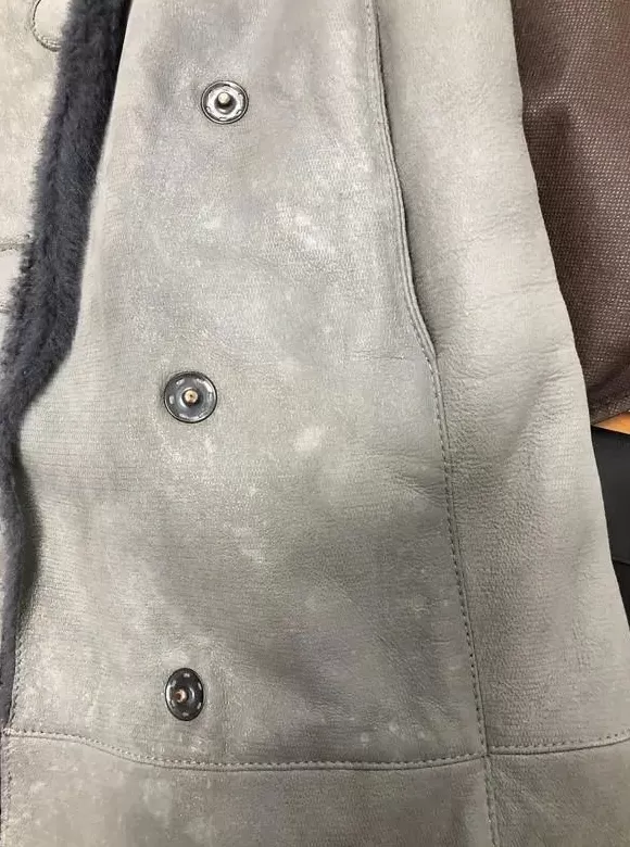 干洗后,阿玛尼皮大衣上出现许多白斑