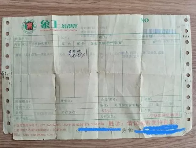 想着只要能洗干净,胡先生没再多计较,付完钱后拿走了取衣凭证。