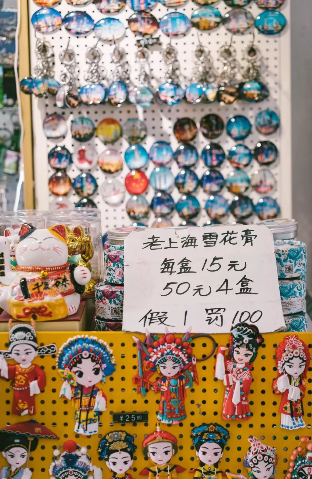 想到的反而是各种“义乌小商品市场批发纪念品”。各种印着上海字样的钥匙扣、冰箱贴动辄都是15块上下的价格,而淘宝上随便一个可能才两三块钱。