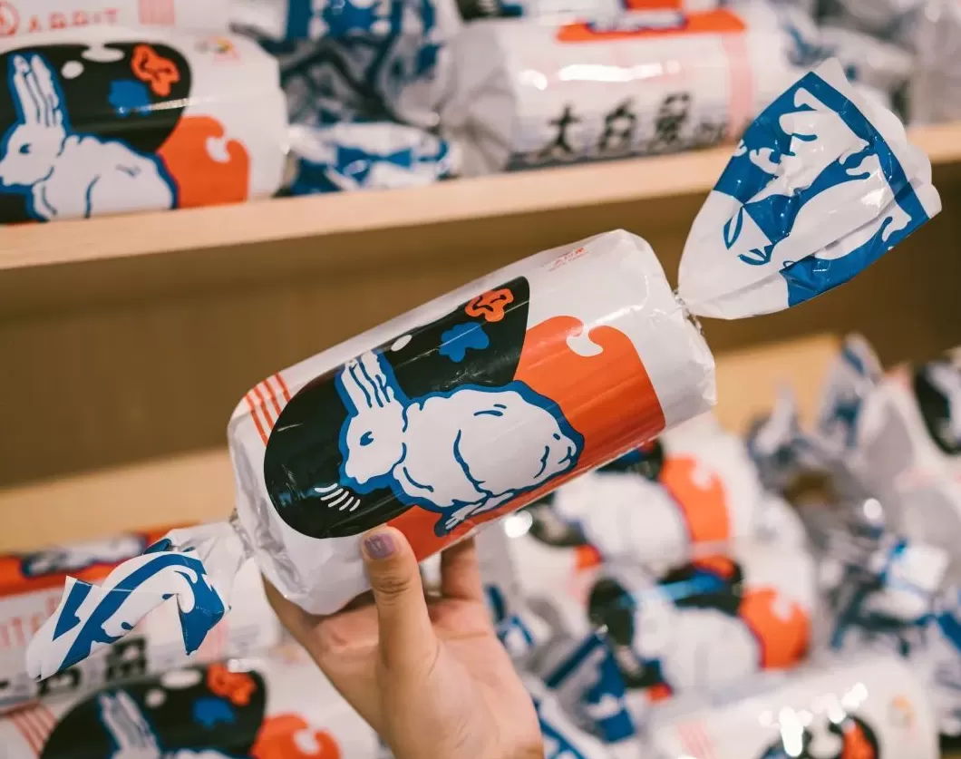 而我们喜爱的“大白兔”仿佛是田子坊的“经济命脉”,随处都是网红大白兔的身影,这里的大白兔有着更丰富的口味,什么榴莲香蕉红豆,买上一大袋,回办公室分着吃,也比买几个“上海钥匙扣”好得多。