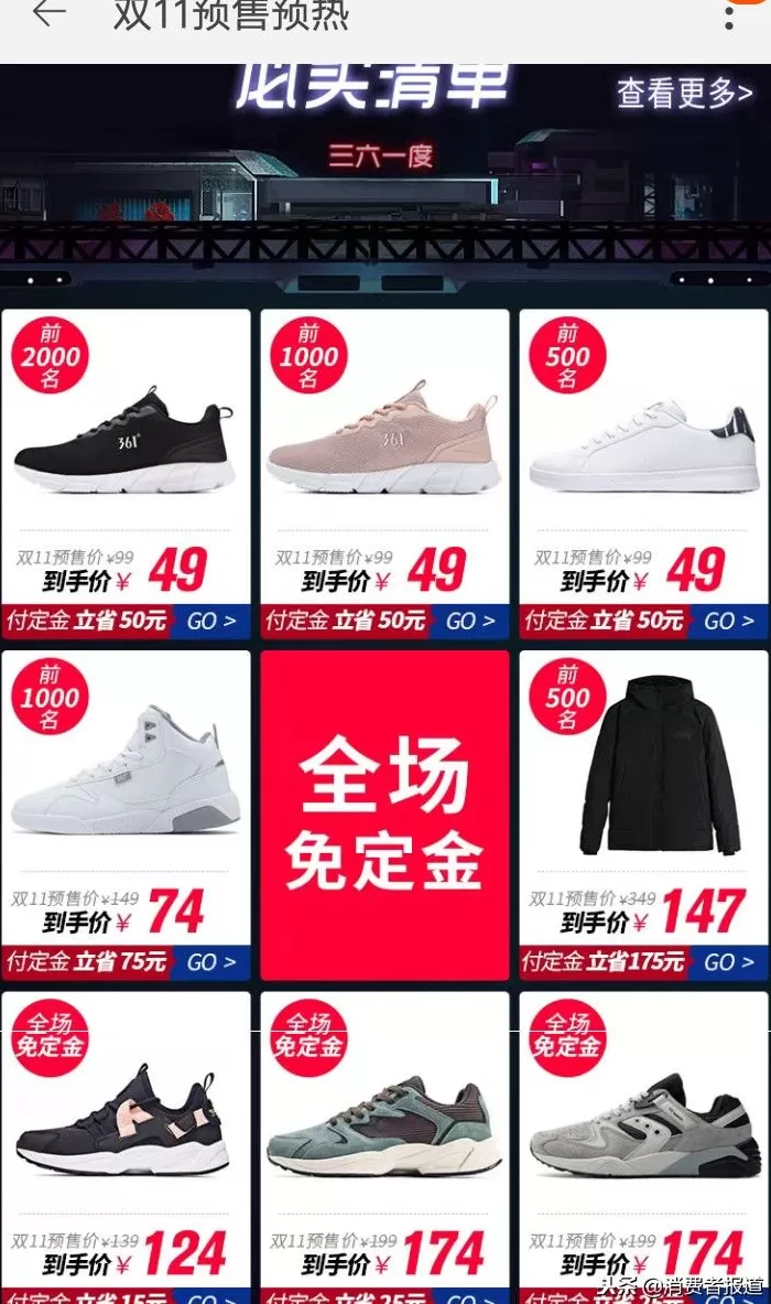 此外,天猫361度官方旗舰店2018年双11前夕还曾推出“免定金尾款半价”预售活动,部分消费者订单中奖并获得免定金、尾款半价资格,但天猫361度官方旗舰店却推脱未履行相应承诺。