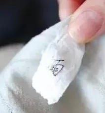 1、在纸巾上写上字,然后滴一滴油,作为特殊的标记确保唯一性,然后钉在衣物的内衬等隐蔽处,然后送往不同的干洗店。