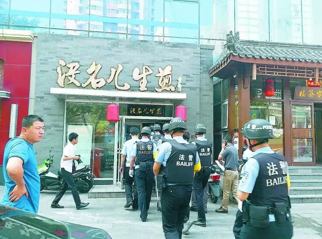经过前期调查,海淀法院未发现该公司有可供执行的财产,但查询发现,该公司持有“没名儿生煎”等注册商标,并且有多家直营店,其中部分店铺仍在正常营业。海淀法院遂兵分三路,奔赴4个执行现场,对涉及的多处店铺同时进行现场执行,并邀请2位全国人大代表、5位北京市人大代表观摩监督。
