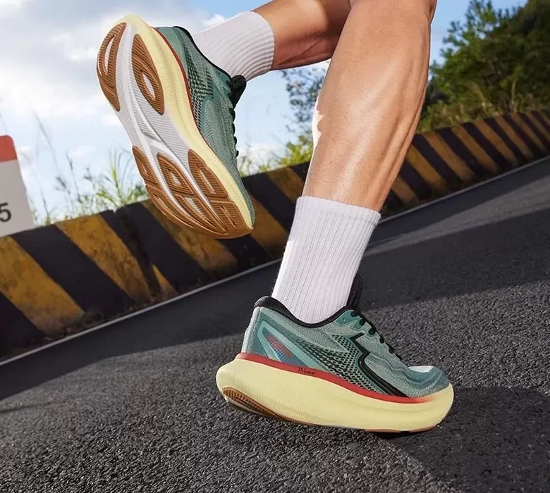 Eleos大地是这五款里缓震配置最高的那一款,PRIMO中底带来了明显的衬垫感,却没有牺牲太多稳定性。我的跑步教练蔡哥用它做长距离慢跑,平均配速放慢但耐力输出更稳。说实话,如果你体重偏大或者刚从零开始训练、想把每一次跑步做成恢复而不是摧残,Eleos能给你更多安全感,价格在399元,算是顶配里的亲民选择。