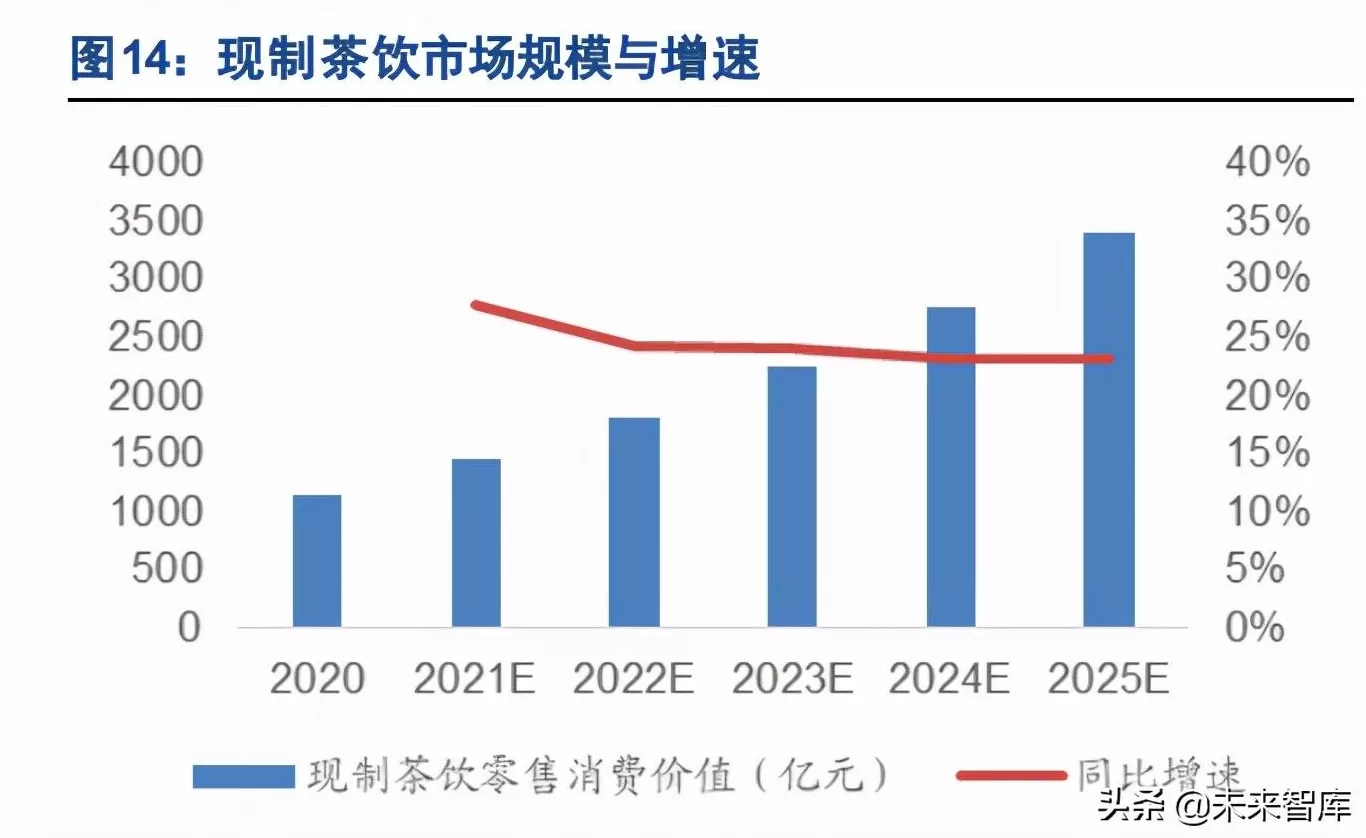 现饮市场规模增速未来或超 20%,纸杯为主要容器之一。现制茶饮(如喜茶、奈雪的茶等品牌)和现磨咖啡 (如星巴克、瑞幸等品牌)风行国内,市场规模增长迅速。根据灼识咨询,2020 年我国现制茶饮消费量约 88 亿杯,市场规模(按零售消费价值计算)达到 1136 亿元,2020-2025 年市场规模复合增速预计达到 24.5%; 2020 年现磨咖啡消费量约24 亿杯,市场规模达到507 亿元,2020-2025 年市场规模复合增速预计达到 19.8%。 现饮的容器以纸杯和塑料杯为主,行业快速增长将带来更多纸杯用纸、纸吸管用纸需求。(报告来源:未来智库)