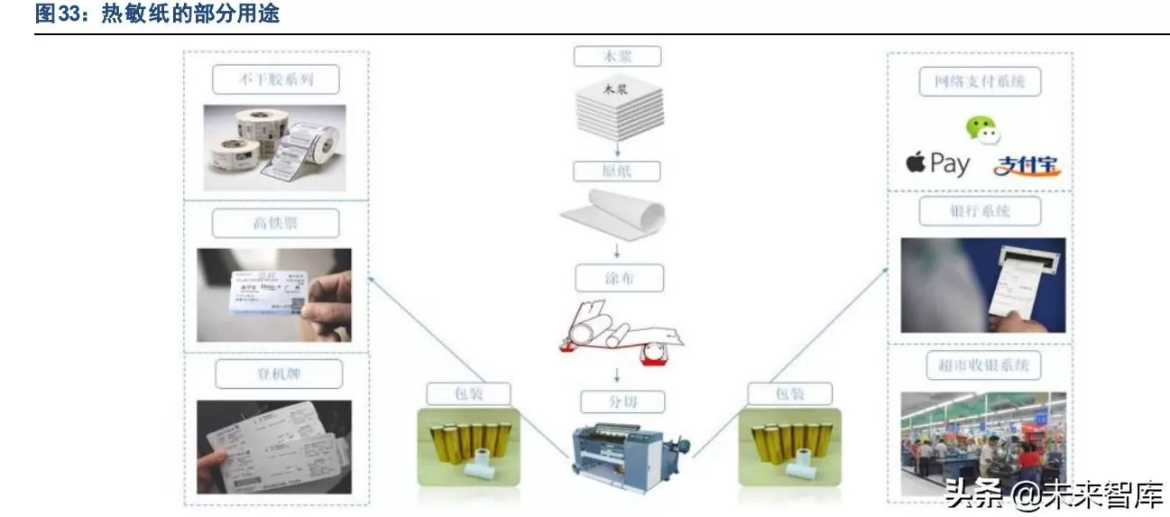热敏纸未来增量或将主要来源于标签和收银打印需求。在热敏纸的各类用途中,我们认为: