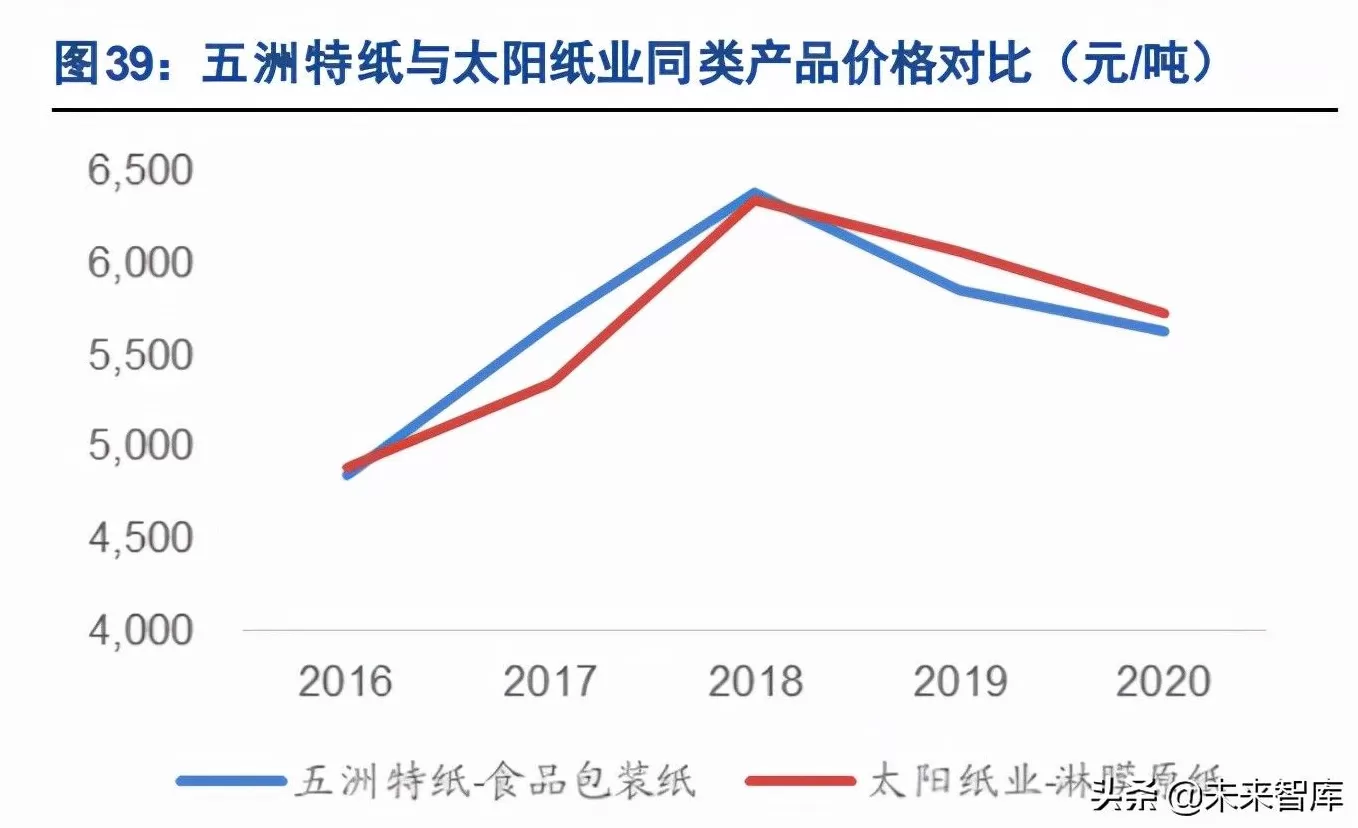 特种纸企纸浆自给率低,盈利能力与浆纸一体化纸企存在差距。目前特种纸企自有制浆产能很少,纸浆主要 依赖于外部采购。在浆价上涨阶段,低成本纸浆库存不足、产品调价幅度有限、调价存在迟滞等因素,都可 能影响公司盈利能力。对比五洲特纸的食品包装纸和太阳纸业的淋膜原纸业务,在产品价格相近的情况下, 太阳纸业的吨毛利整体要高于五洲特纸。