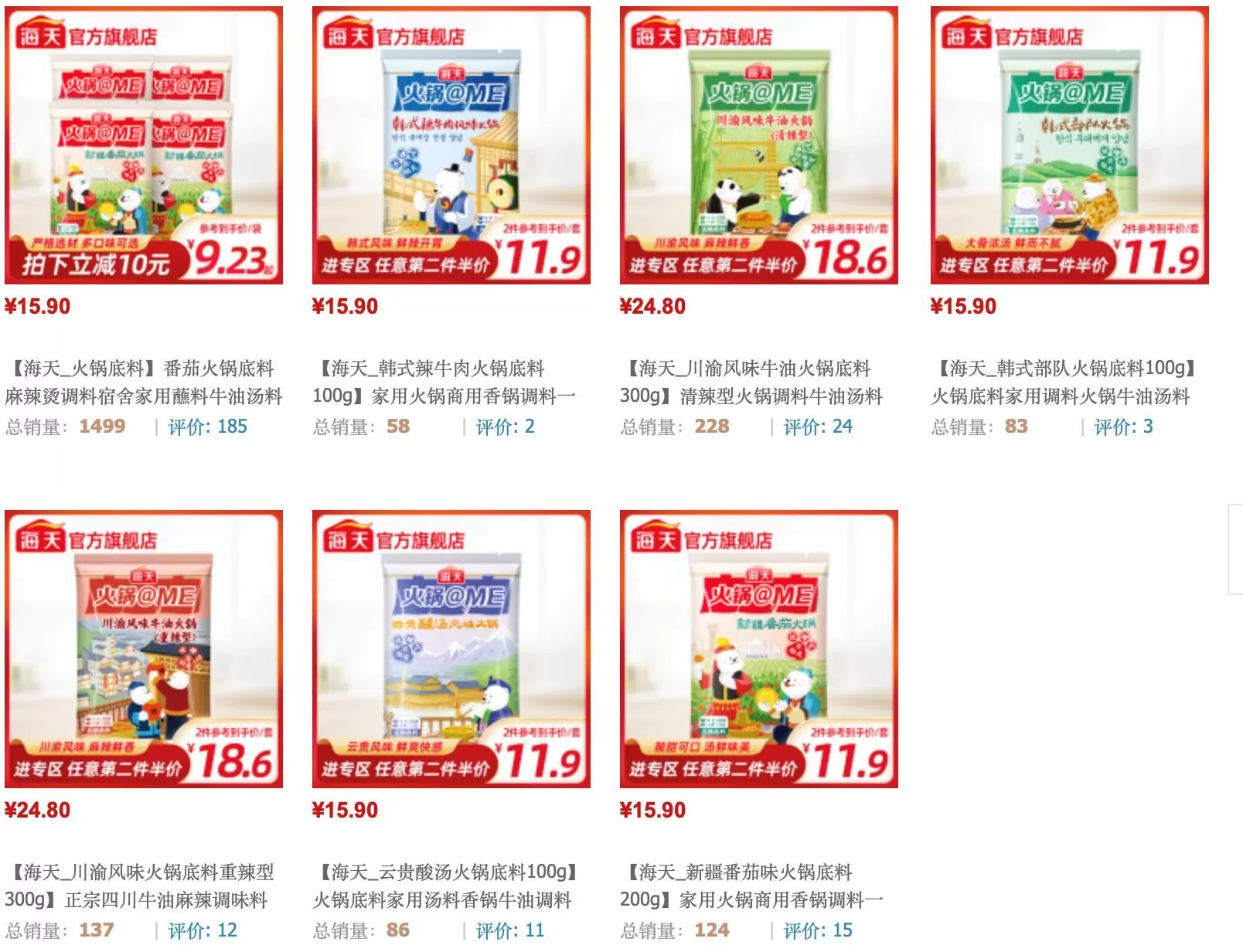 2020年12月31日,新京报记者查询海天味业天猫旗舰店发现,除了主营业务酱油、蚝油等之外海天的其他新品类销量都不尽如人意。其中,火锅底料销量十分惨淡,月销量最高是番茄火锅底料,有1499份,最低是韩式辣牛肉火锅底料,仅有58份。
