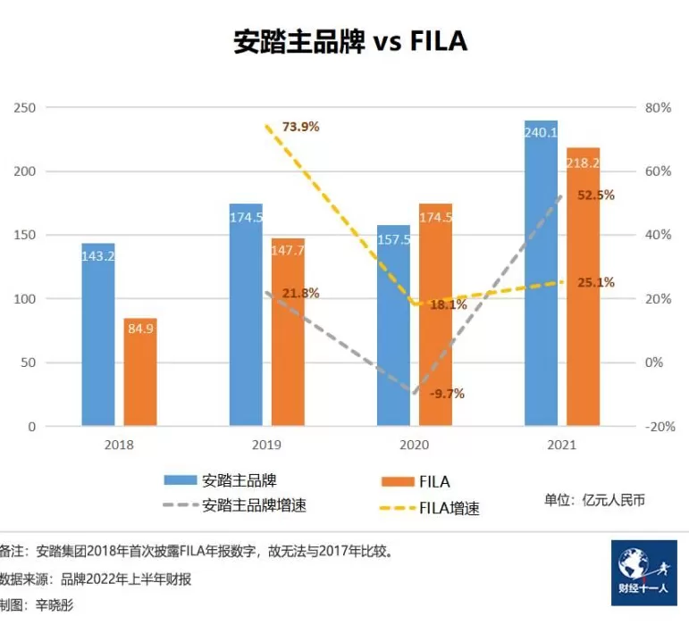 此番FILA营收、毛利润、经营利润等所有数据全线下降,有些出乎市场意料。前几年安踏的增速一度超过40%,FILA功不可没,它和安踏主品牌撑起了集团营收的半边天,甚至在2020年营收一度超越安踏。