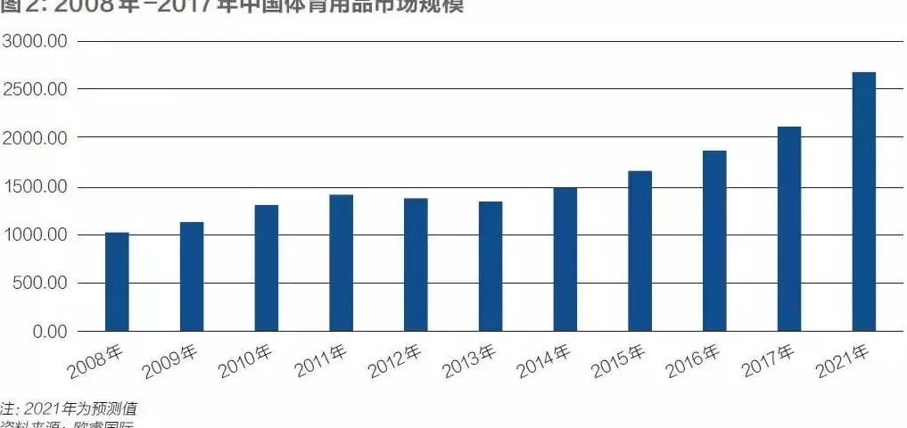 欧睿国际预计,2021年中国体育用品市场规模将达到2696亿元,比2017年的规模增长近三成。行业规模的扩大为企业发展带来了想象力,然而每家企业都有看得见的天花板。