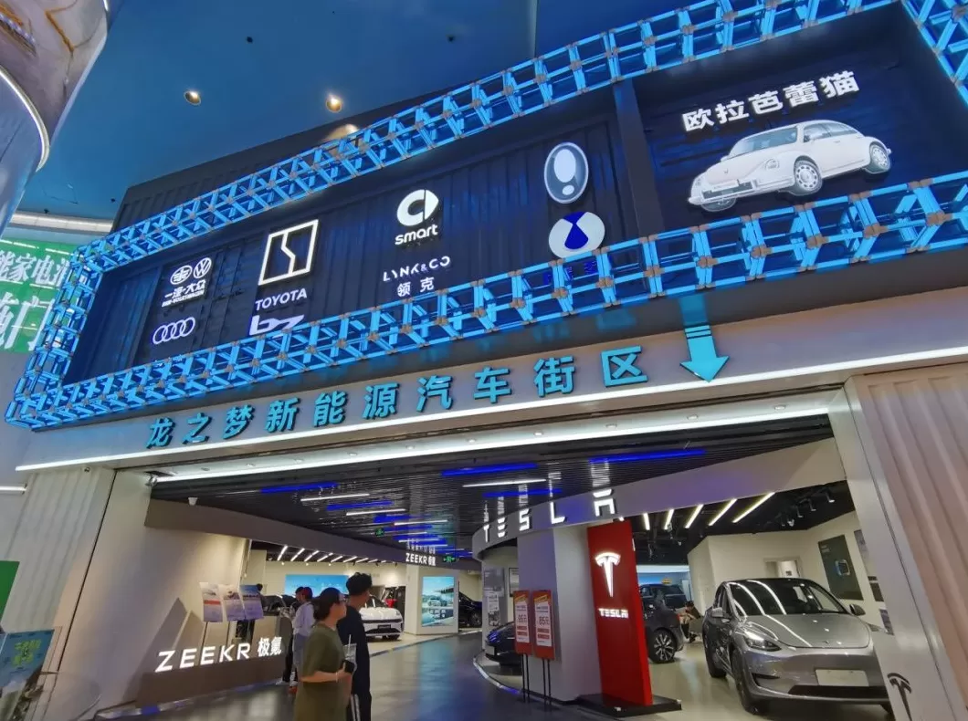 作为龙之梦的创新之举,其于2021年起,基于对国家政策和消费市场的研判,率先打造的新能源汽车街区,受到市民好评。街区集聚20多个汽车品牌,可提供展陈、销售、体验、科普等服务。经过3年发展,街区形成品牌效应,吸引众多知名汽销品牌前来龙之梦举办首发首秀。