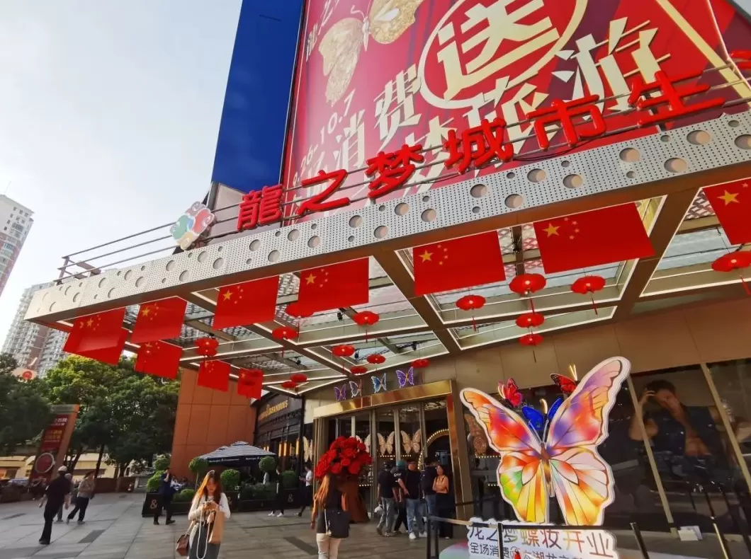 今年9月,龙之梦以全新“蝶妆”面貌亮相,契合“蝶变”一词,融入蝴蝶、花卉等元素焕新空间。商场公共区域,新增多处艺术美陈,不少装置以蝴蝶为造型,营造了生机盎然的视觉效果。针对不同业态,龙之梦对各楼层进行了街区化打造,涵盖花花世界、科技未来、国潮古风等主题。