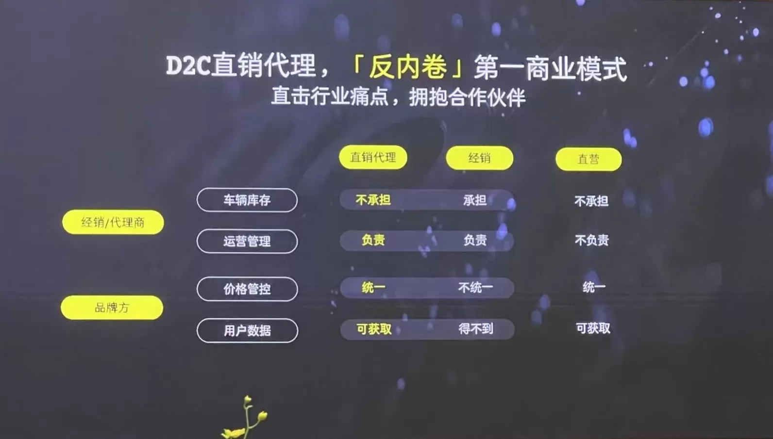 易寒: 比如我们在市场、用户运营这件事上,跟过去传统的批售模式或者经销商模式有很大的不同。现在厂家要做更多的前置工作,比如减少区域管理人员,增加与用户数据以及数字化手段相关的中台。