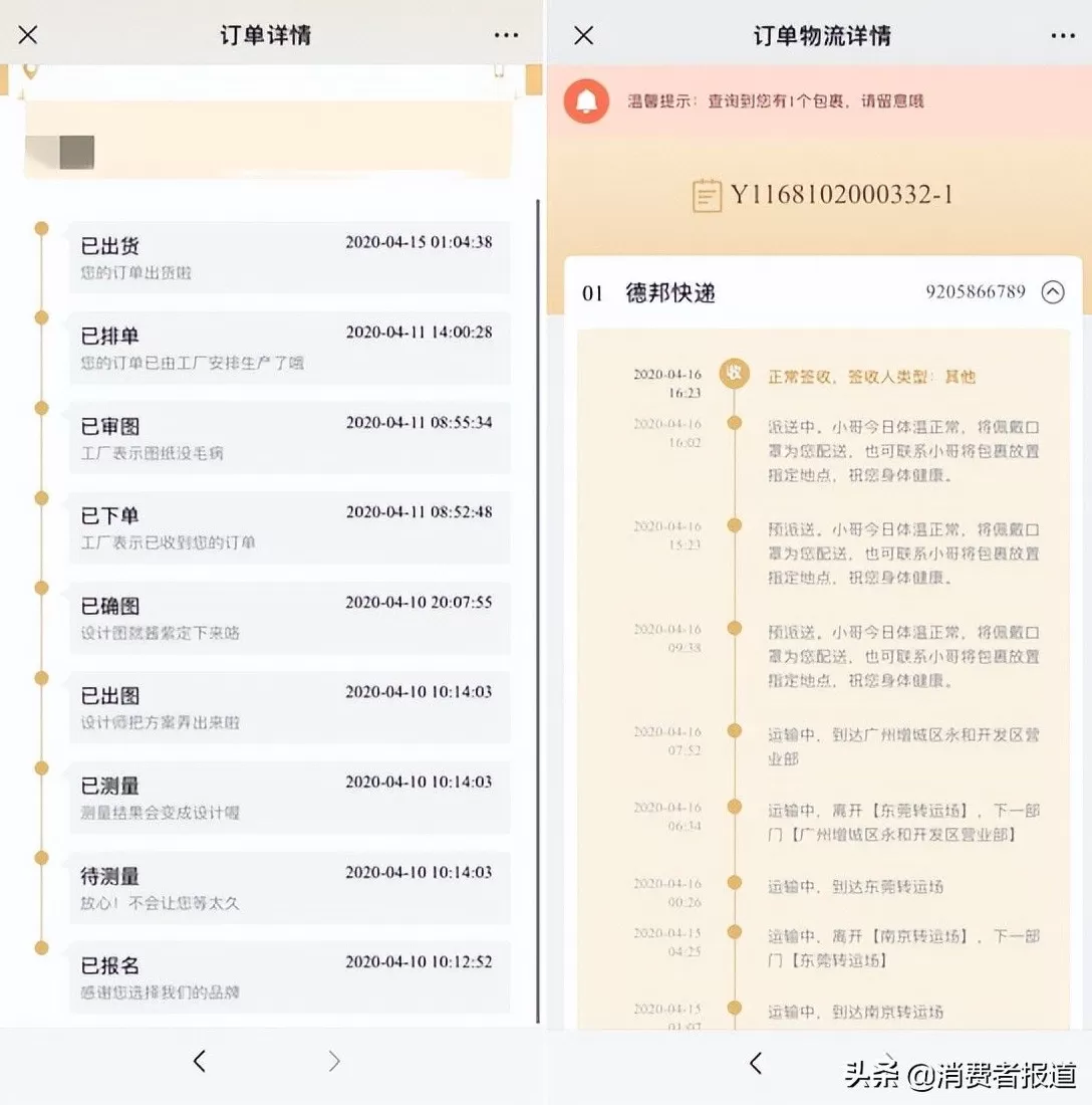 在从下单到完成交付的完整定制流程中,消费者不止可以通过免费服务热线,实时跟踪订单情况,同时也可以通过欧派的官方小程序,实时查阅到生产进度和订单交期。小程序搭载了催单模块,可一键接入总部人工客服。对于终端消费者而言,通过官方小程序,可以直达工厂查看订单情况,不仅可以防范个别经销商跑路或者收钱却未下单的情况,而且可以进一步确保订购产品的按时、按质、按需交付。