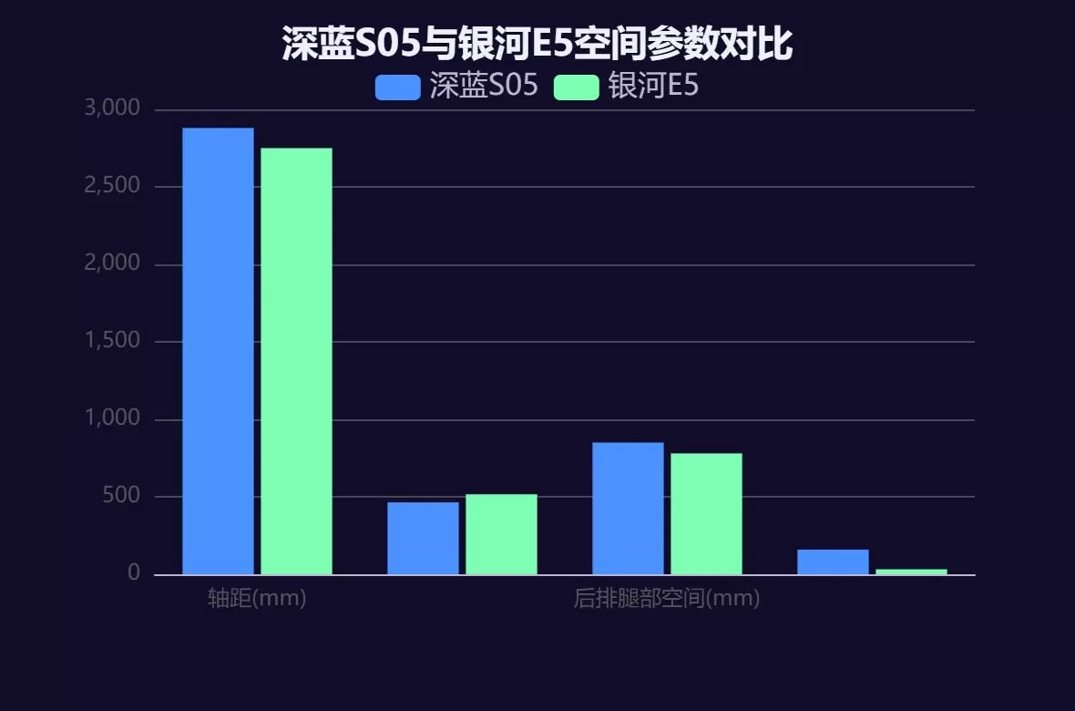 两车的空间基础差异首先体现在车身尺寸与轴距数据上。深蓝 S05 以 2880mm 轴距形成显著优势,而银河 E5 则通过优化设计提升空间利用率,具体参数如下表所示: