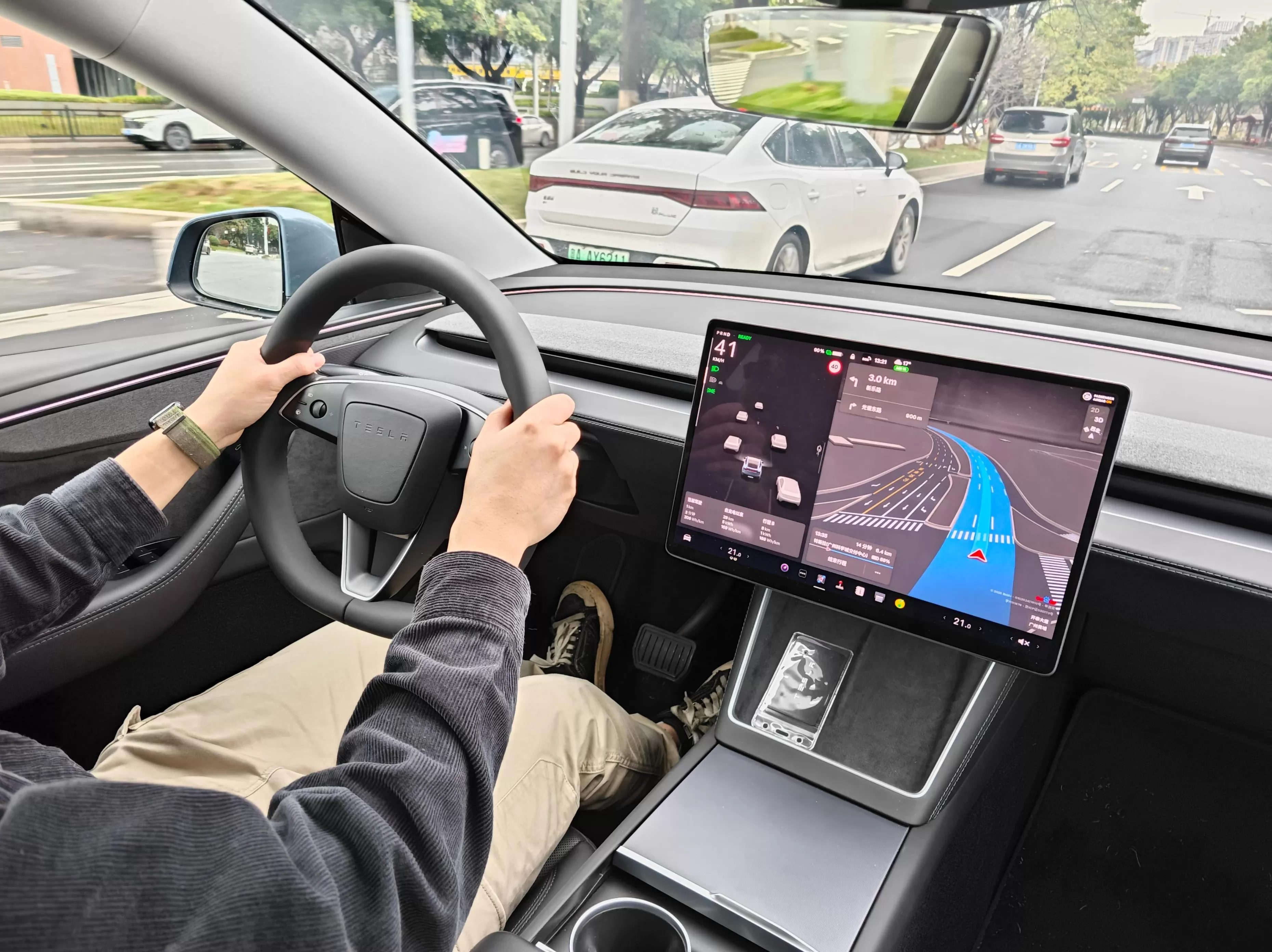虽然智能驾驶标配 HW4.0 自动驾驶硬件,但只保留基本的交通感知巡航控制,需要额外加钱才能体验带自动转向功能的 FSD。