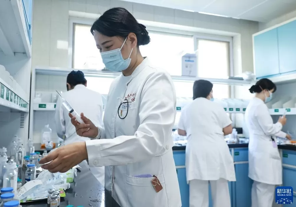2025年5月12日,武汉大学中南医院胸外科护士为患者输液做准备。新华社发(赵军摄)