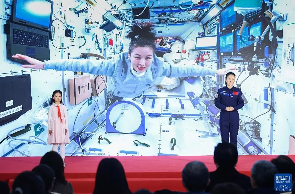 2024年11月28日,航天员王亚平与女儿在中国妇女儿童博物馆参加“巾帼科技 创新未来——科技创新巾帼行动主题展”开幕式。新华社记者 张玉薇 摄