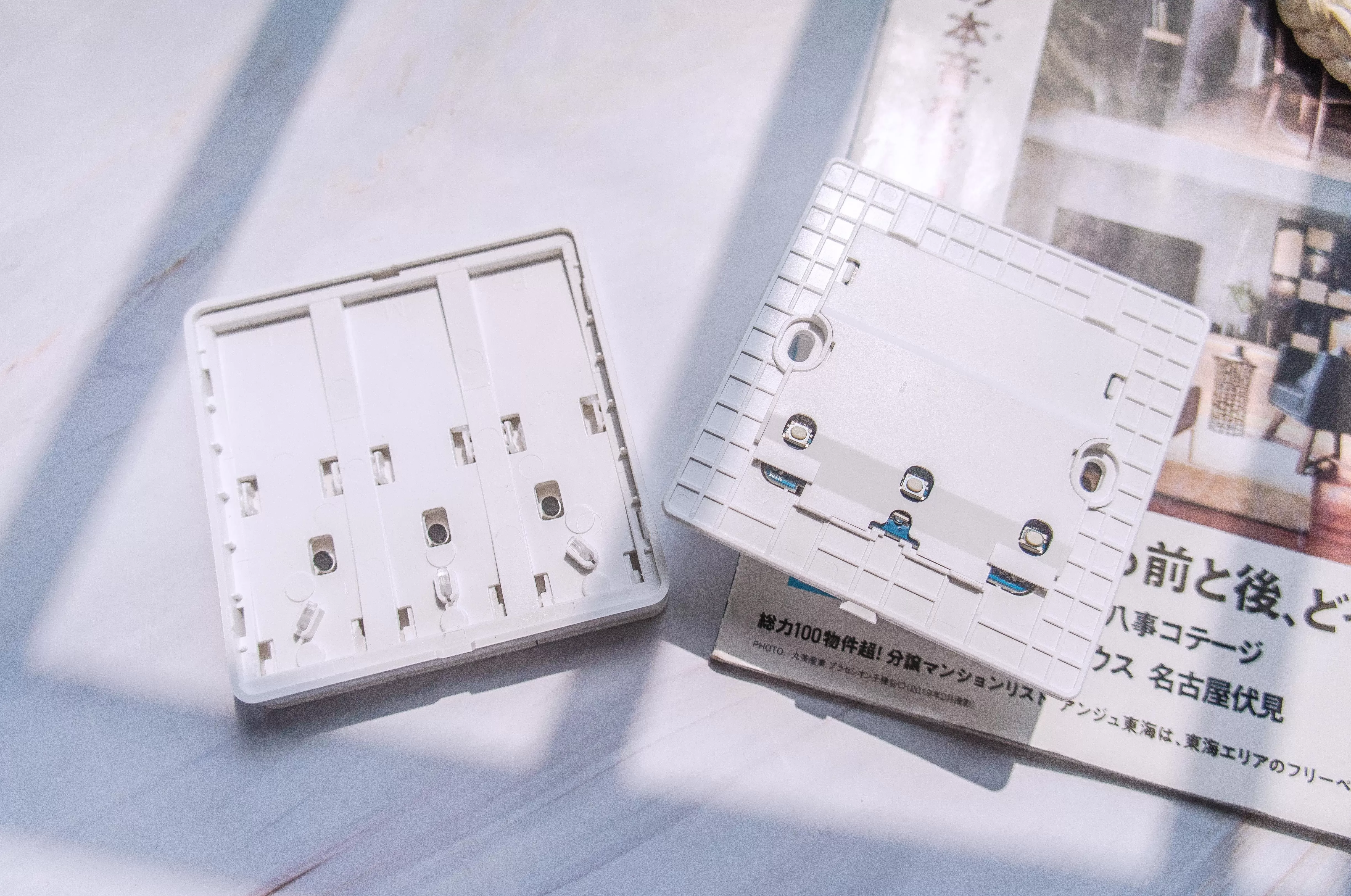 因为请物业电工上门更换开关单价一般在20-30元/个,所以直接自己动手,Gosund这款墙壁开关背面有5个卡槽,用一字螺丝刀插在卡槽轻轻旋转即可打开后盖。