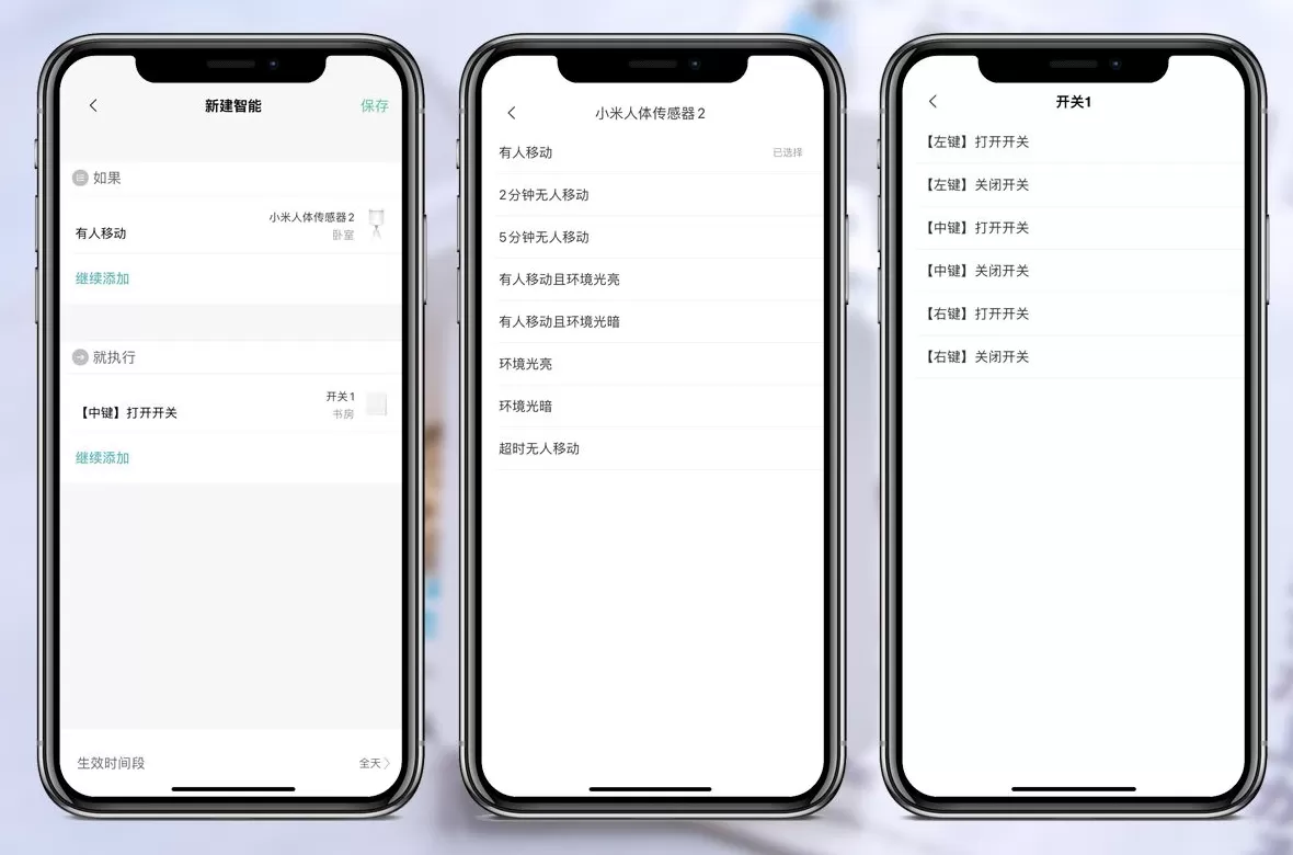 因为PO主家里也购买了小米人体传感器,可以顺便测试一下感应开关,首先在智能场景里设置好执行条件,我是设置【如果】小米人体传感器2感应到有人移动,就执行Gosund开关中键打开。