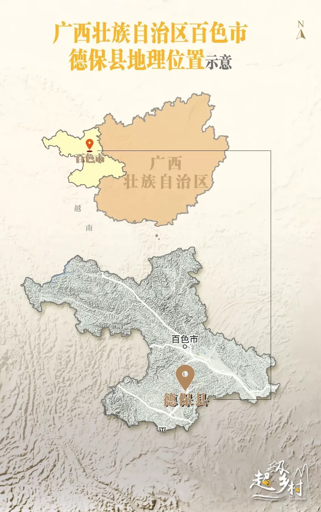 德保县 坐落在广西百色市西南部 的群山褶皱里,地处桂西边境咽喉,距国家一级口岸龙邦76公里,是连接越南东盟的重要节点。全县面积2575平方公里,聚居着壮、汉、瑶等9个少数民族,壮族人口占98%,总人口36.8万。
