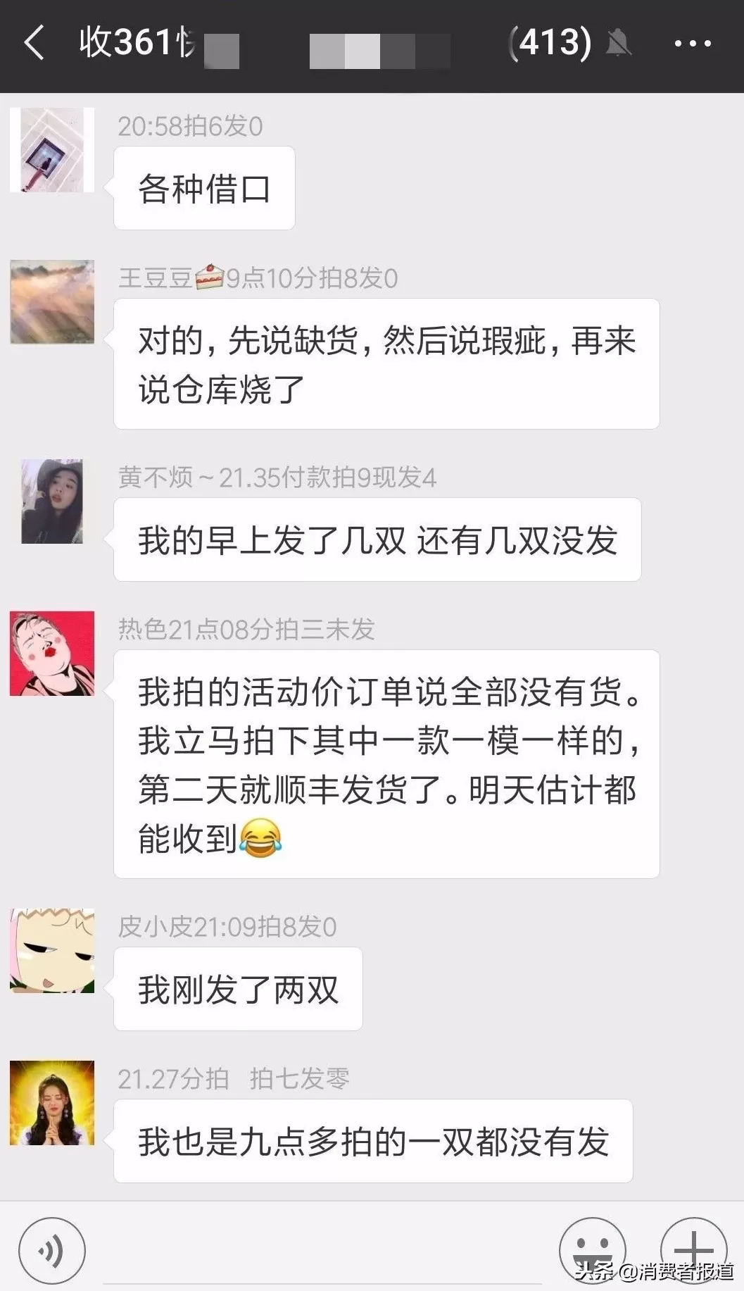 不过,截止本刊发稿,依然有大量消费者在各大社交平台表示,买了七、八双鞋子,显示361度发货数量依然为0。