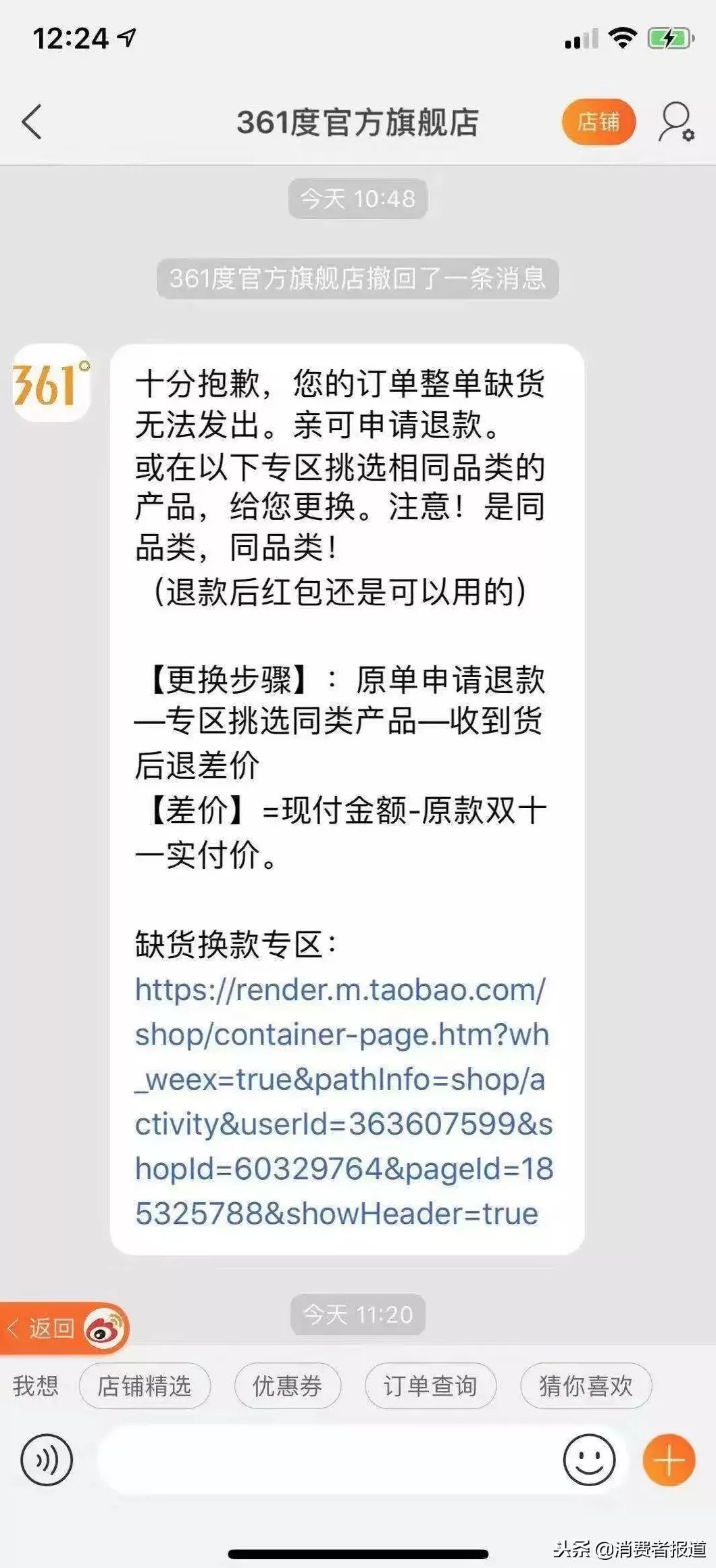 对于天猫361度官方旗舰店双11“缺货门”事件,《消费者报道》也将持续关注。