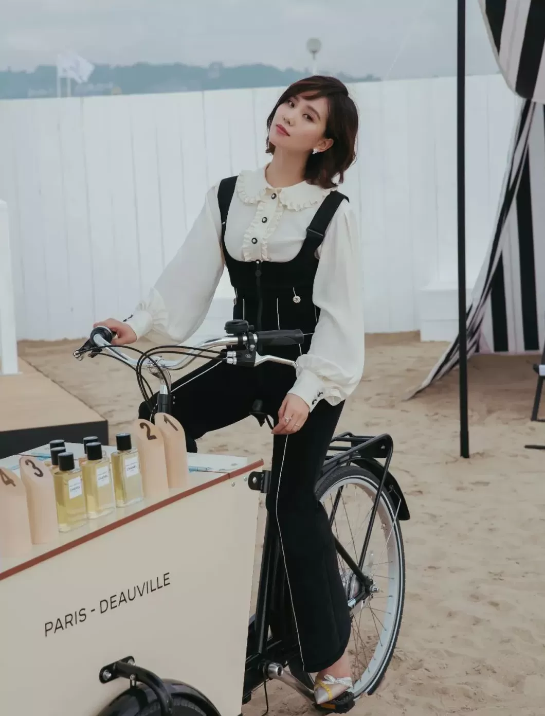当晚她与一众受邀嘉宾坐于赛场看台之上观看马术比赛,更不时为自己支持的选手加油。48小时的巴黎-杜维埃之旅,让她陶醉于法式度假文化之中。