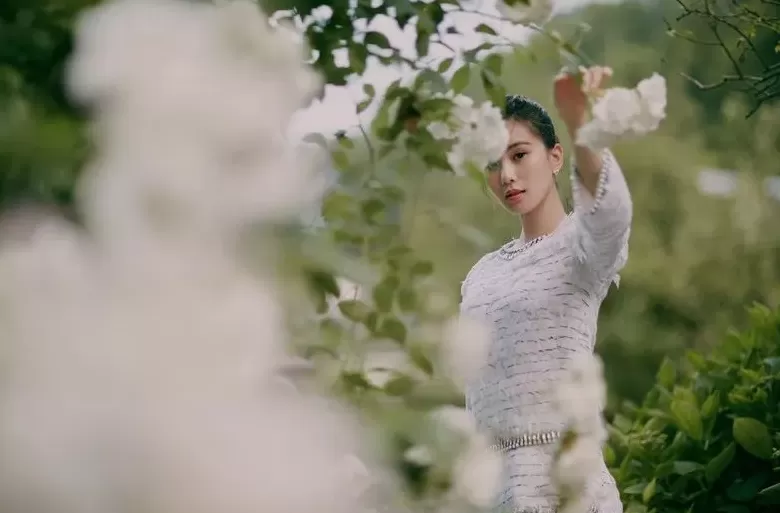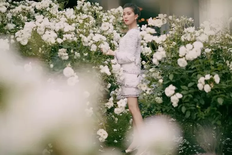 佩戴CHANEL高级珠宝彗星系列白18K金镶钻耳环和戒指。诗宝更在赛马场附近的花园内,贡献了一组颜值爆表的初夏大片,清丽脱俗的她站在花丛间宛如童话中的仙子漫步而来。