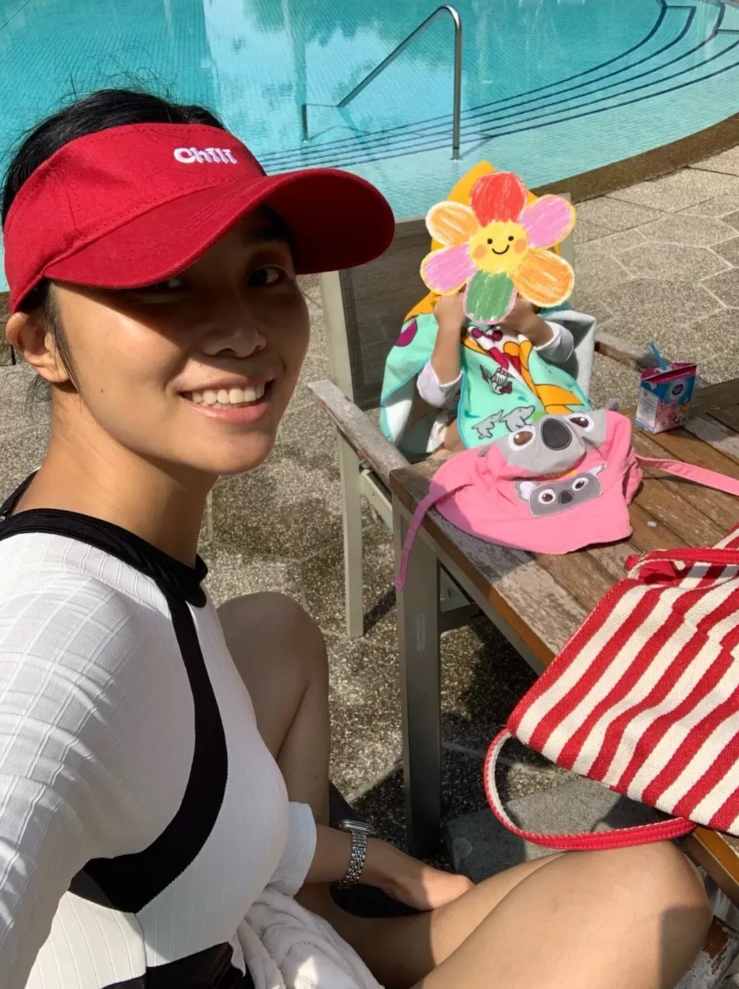 槿希与她负责陪伴的小朋友游泳