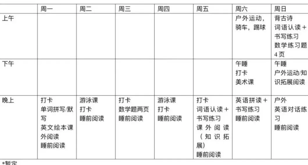 冰冰制作的学习计划表