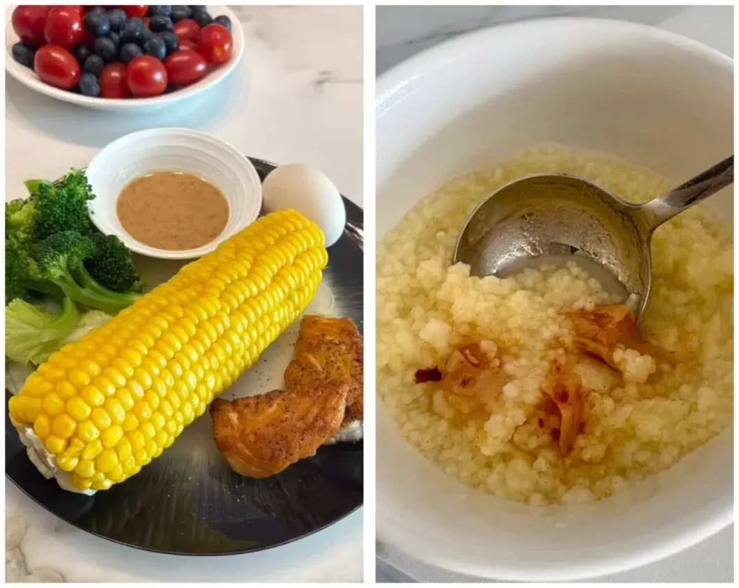 冰冰雇主烹饪的西式早餐(左)、冰冰钟爱的中式早餐(右)