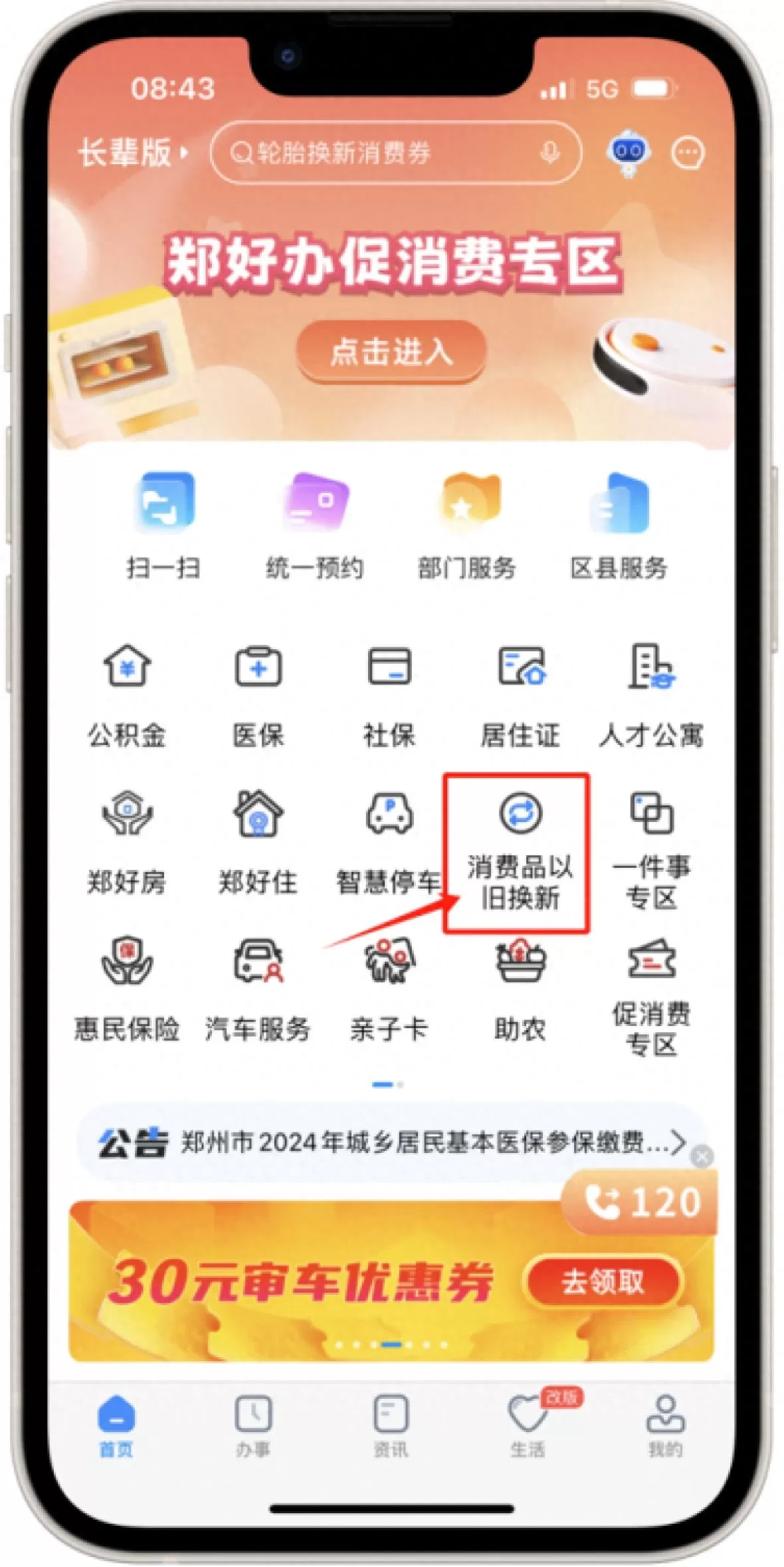 10月17日起,个人消费者打开郑好办APP,点击“促消费专区”或“消费品以旧换新”,进入家装厨卫“焕新”活动;或直接搜索“家装厨卫焕新”进入活动页面。