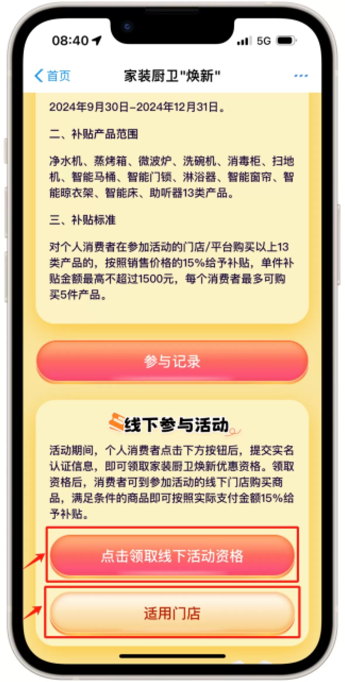 补贴品类净水机、蒸烤箱、微波炉、洗碗机、消毒柜、扫地机、智能马桶、智能门锁、淋浴器、智能窗帘、智能晾衣架、智能床、助听器13类产品。