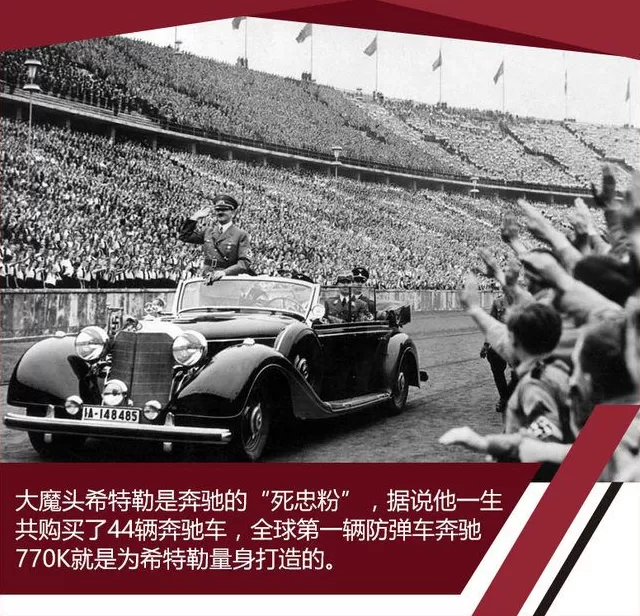 两家公司合并之后,戴姆勒-奔驰公司迎来了一位“死忠粉”,据说他一生中购买过44辆奔驰汽车。1933年希特勒上台,欧陆风云激变,列强间暗流涌动,戴姆勒-奔驰为这位“死忠粉”量身打造了一辆造型典雅又厚重的“大奔”,它载着日耳曼民族的“希望”在大街上接受狂热民众的欢呼。然后这个所谓的“希望”再次带领着德国走上了战争之路。作为给这个人提供座驾的奔驰,自然又成为了第三帝国战争机器的一部分。