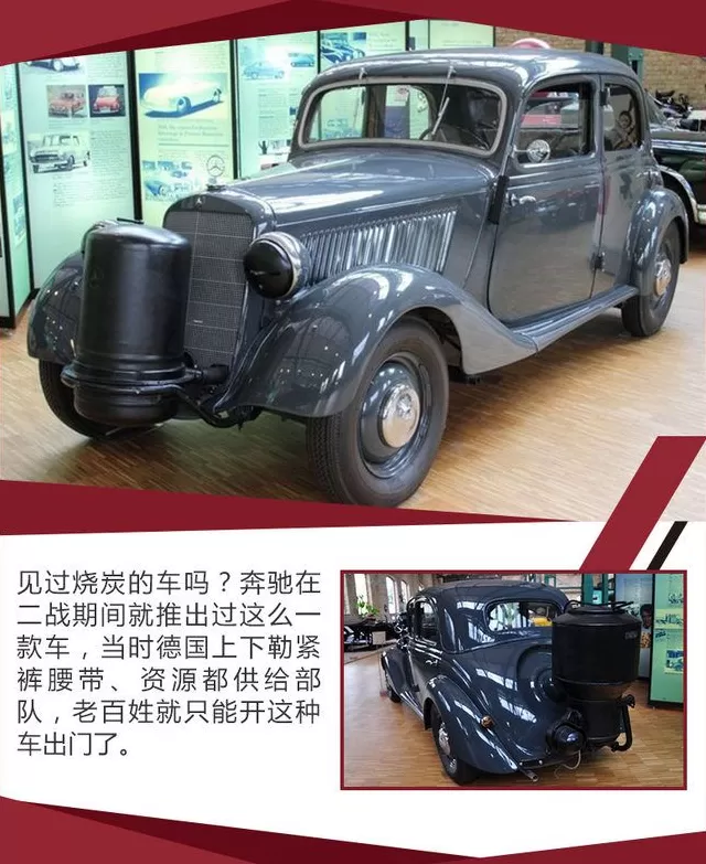 二战中德国的机械化部队名扬天下,兵种的搭配、战术的运用都成为后世学习的对象,但是二三线的后勤部队仍然全面“骡马化”,部队尚且如此,更不用说德国老百姓了。因为物资都要优先供给军方用于生产武器装备,德国老百姓在战争中的那些年过的是“交通基本靠走,通讯基本靠吼”的生活。不过戴姆勒-奔驰算是个异类,它在二战期间面向普罗大众推出了一款烧木炭的车,加满一次炭能开200公里,这对出门只靠人力的老百姓来说绝对是个福音。