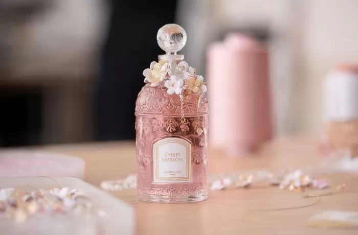 法国娇兰今年春季推出了限量编号发售的传奇淡香水繁樱大道,并与巴黎年轻设计师 Lucie Touré进行首次艺术合作,以鎏光花瓣项链环绕瓶身,全球限量 2466瓶。