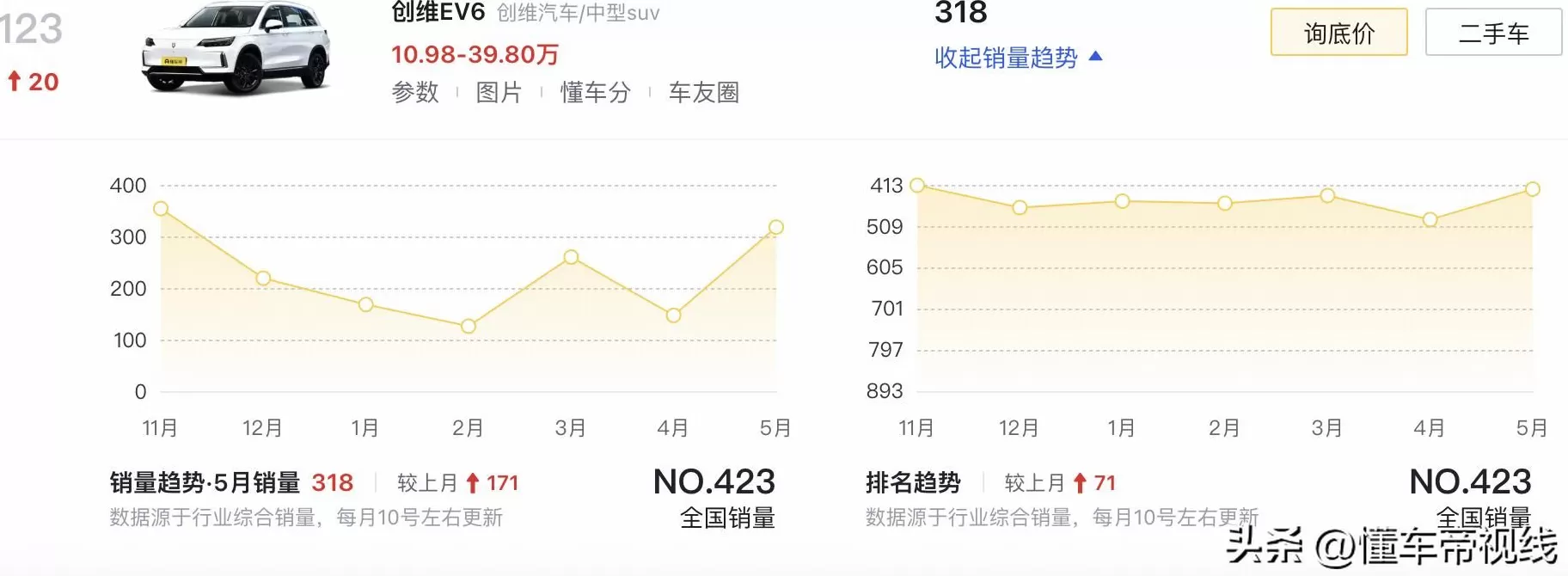 从销量来看,创维EV6最新5月销量318辆,位列当月纯电动车销量榜单第123位。在其所处的纯电中型SUV市场,可选车型还有乐道L60(指导价20.69万元起)、小鹏G6(指导价17.68万元起)、比亚迪海狮07EV(指导价18.98万元起)、极狐 阿尔法T5(指导价11.98万元起)等。更多新车消息,懂车帝将持续关注。