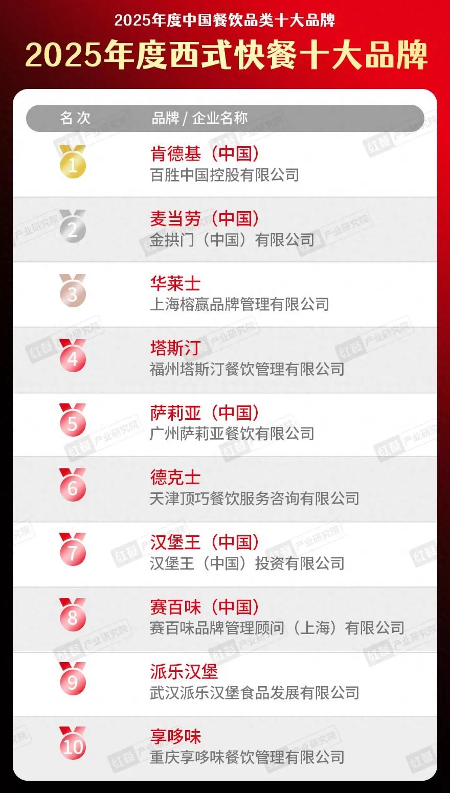 “2025年度西式快餐十大品牌”榜单隆重揭晓!
