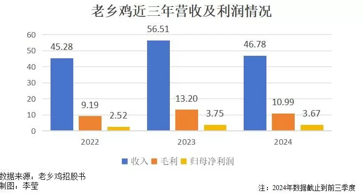 2022年和2023年,老乡鸡归属于母公司拥有人的利润分别为2.52亿元和3.75亿元,同比增长48.8%。2024年前三季度,老乡鸡归属于母公司拥有人的利润为3.67亿元,同比增加3.4%。