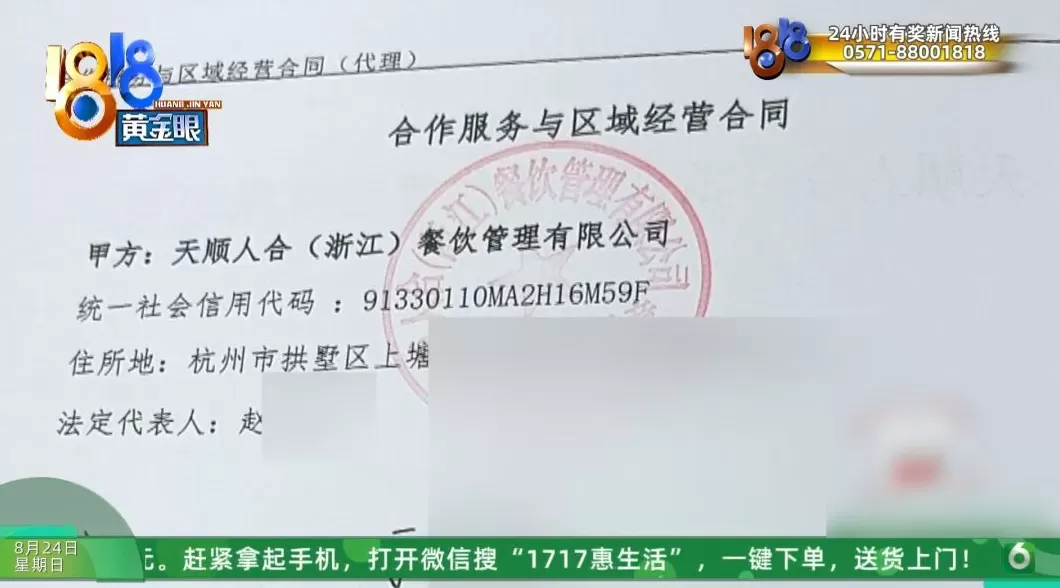 天顺人合(浙江)餐饮管理有限公司运营负责人 周经理 :针对没有开店的这个客户,我们会有一些方案,但是我们现在也在诉讼的过程当中,我们也尊重司法裁定。对于开了店的客户,我们也有一个通知给大家发出去了,接下来会做一些联名或者代言,但是现在没100%确定,但是我就会在近期去出,再把钱投入到运营方面去。但是对于已经开店的客户那边,他如果说是想去把这个合作费用退回去的话,这个满足不了。
