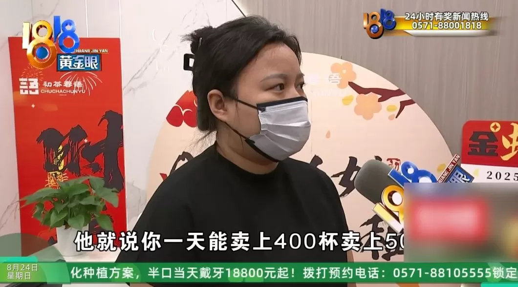 丛女士 :买一送一,也没有人,因为宣传力度不够。刚开始我们来加盟的时候,他就说你一天能卖上400杯,卖上500杯,说天天营业额能达到五六千。每天营业额只是五六十块钱,到7月15号一个月,我的营业额只达到了4000块钱,还在开。最近情况一天就三十二十,而且外卖饿了么美团都有,三四杯左右。