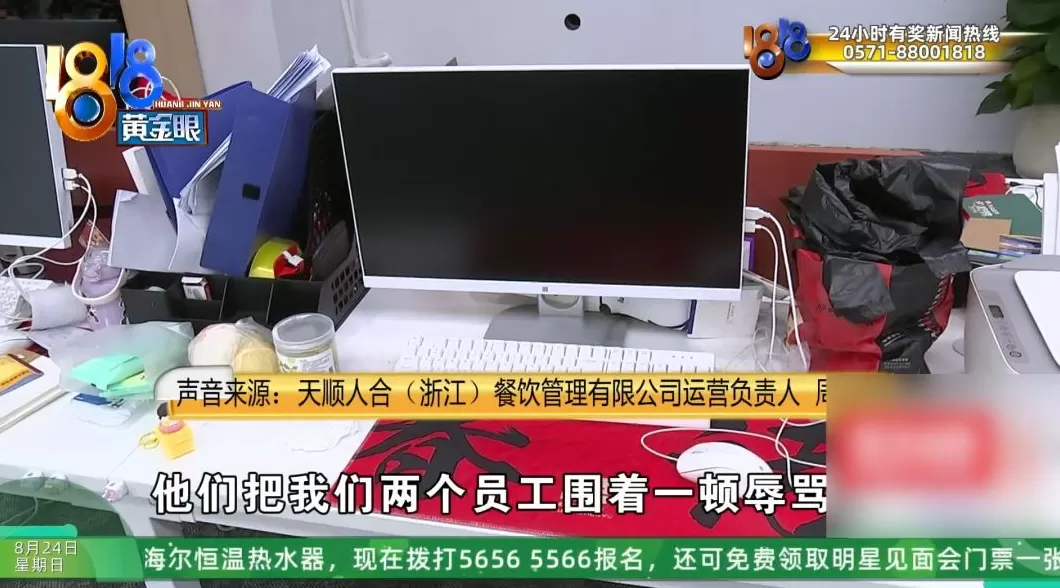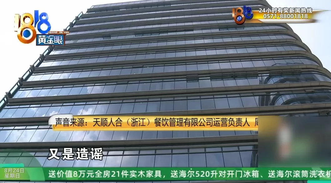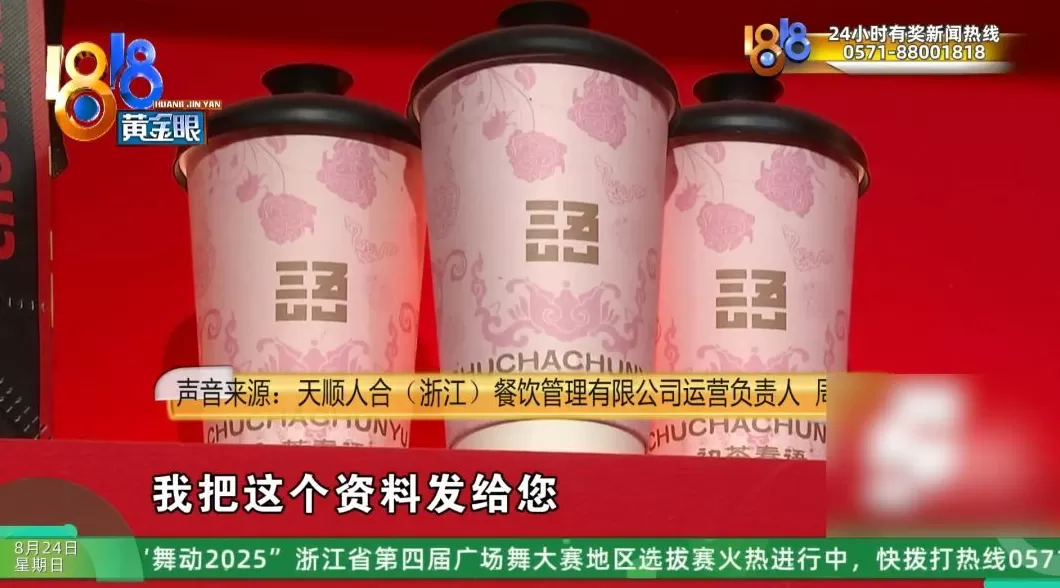 天顺人合(浙江)餐饮管理有限公司运营负责人 周经理 :按照合同在履约,做生意从来不会有人承诺她说,每天必须达到多少杯,达到多少钱的流水。都一直在正常的办公,您看到的这个场所里边,因为他们把我外边那个门也暴力拆坏了,整个的把所有的办公的场地造得其实您应该能看得到。他们把我们两个员工围着一顿辱骂,考虑到人身安全的问题,不耽误运营的前提下就在家办公。但是这个我也给大家有做报备了说清楚了。一个就是合作了以后,他是想自己来解除合同,我们当时已经跟他答应退还80%,他自己拒绝了。有一个女士,她说如果说你不给我这个钱,不承担我这个律师费,我就让他这几个人都过来,然后另外有三到四家,其他的我刚才也发了一部分的通知。可能是被蒙在鼓里了,因为他们传达的说公司“跑路”了,说公司已经给部分人退了款了,然后就蛊惑大家,所以说才造成了今天的局面。