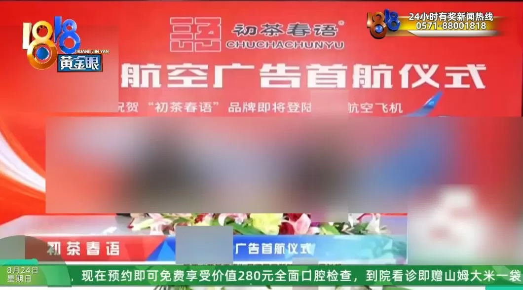飞机机舱内贴着“初茶春语”的广告