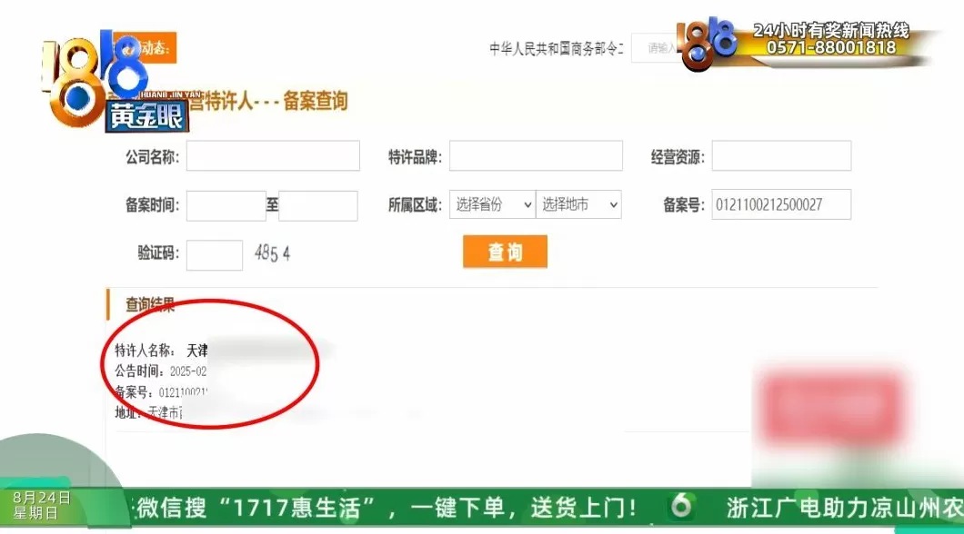 记者按照牌子上的备案号进行了查询
