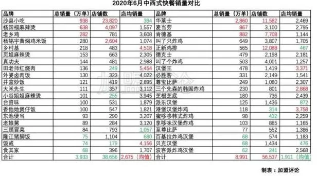 第二,中西式快餐的对比。 看过加盟评论2020年第二季度中式快餐大数据报告”(点此查看) 的朋友们可能会很自然的对中式快餐和西式快餐的数据进行一番对比。加盟评论在这里就先抛砖引玉,更多数据大家可以自己建表挖掘。